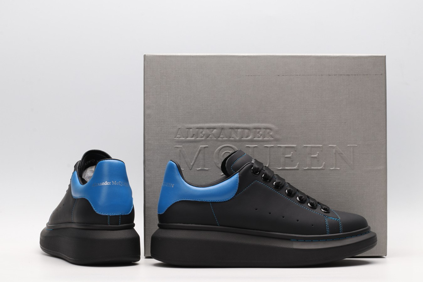 ALEXANDER MCQUEEN black oversized sneakers with blue heel