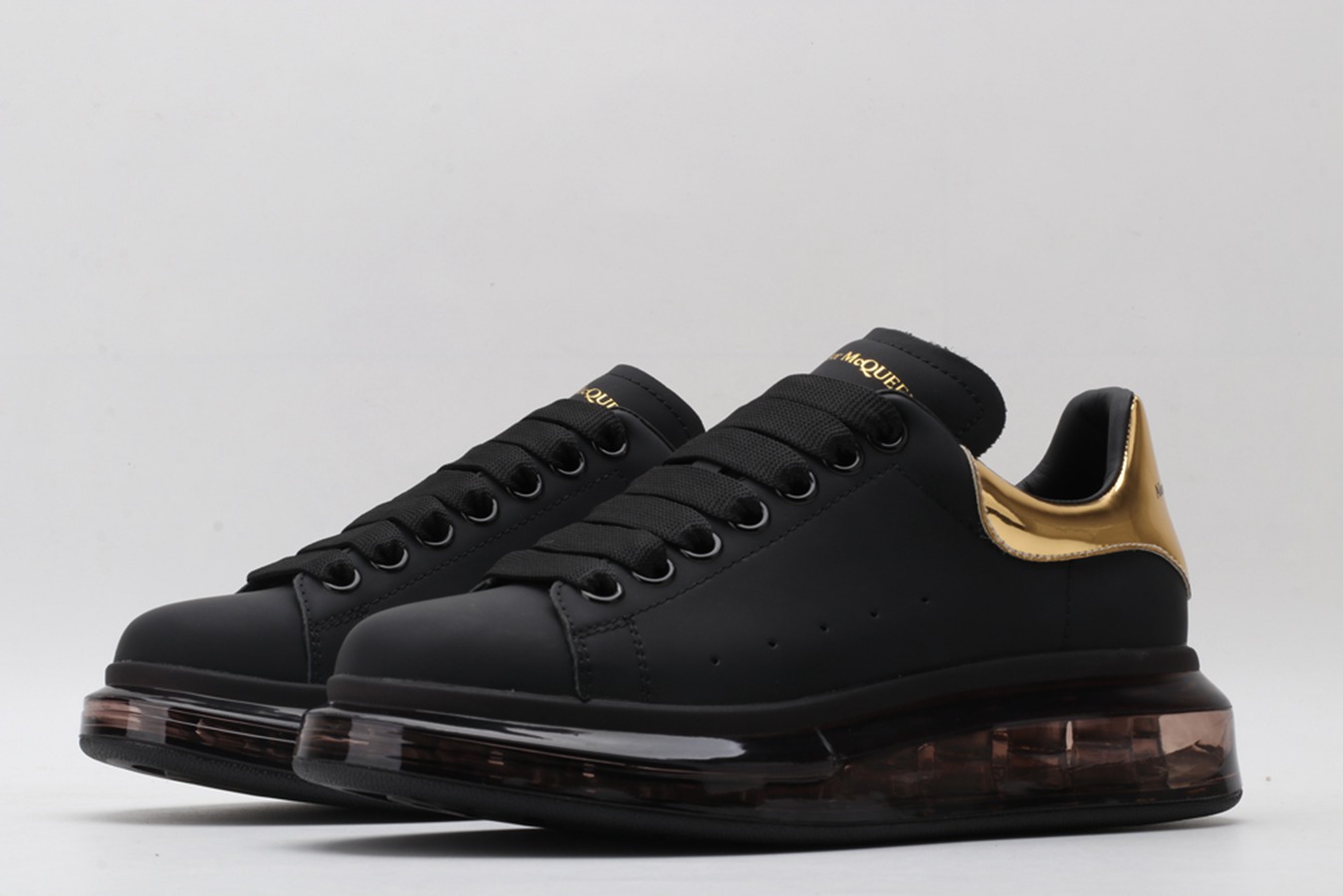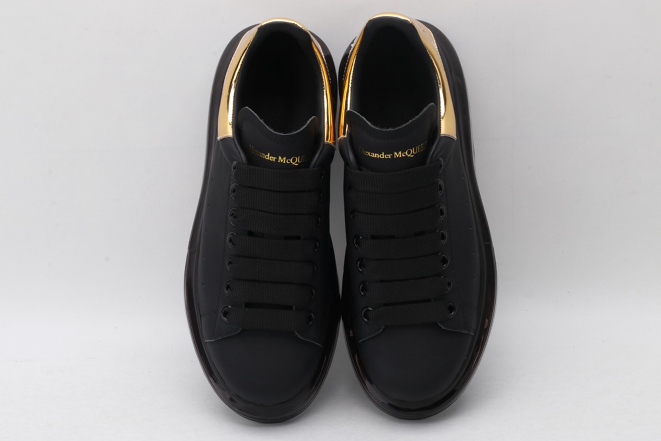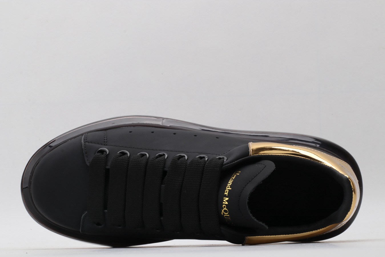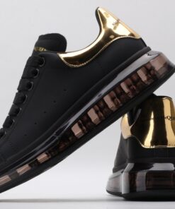 ALEXANDER MCQUEEN black oversized sneakers with gold heel
