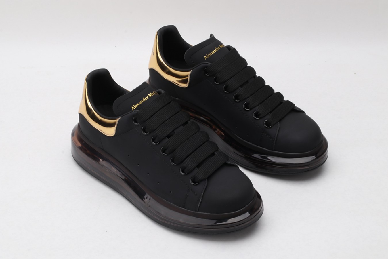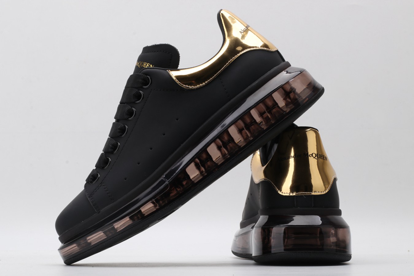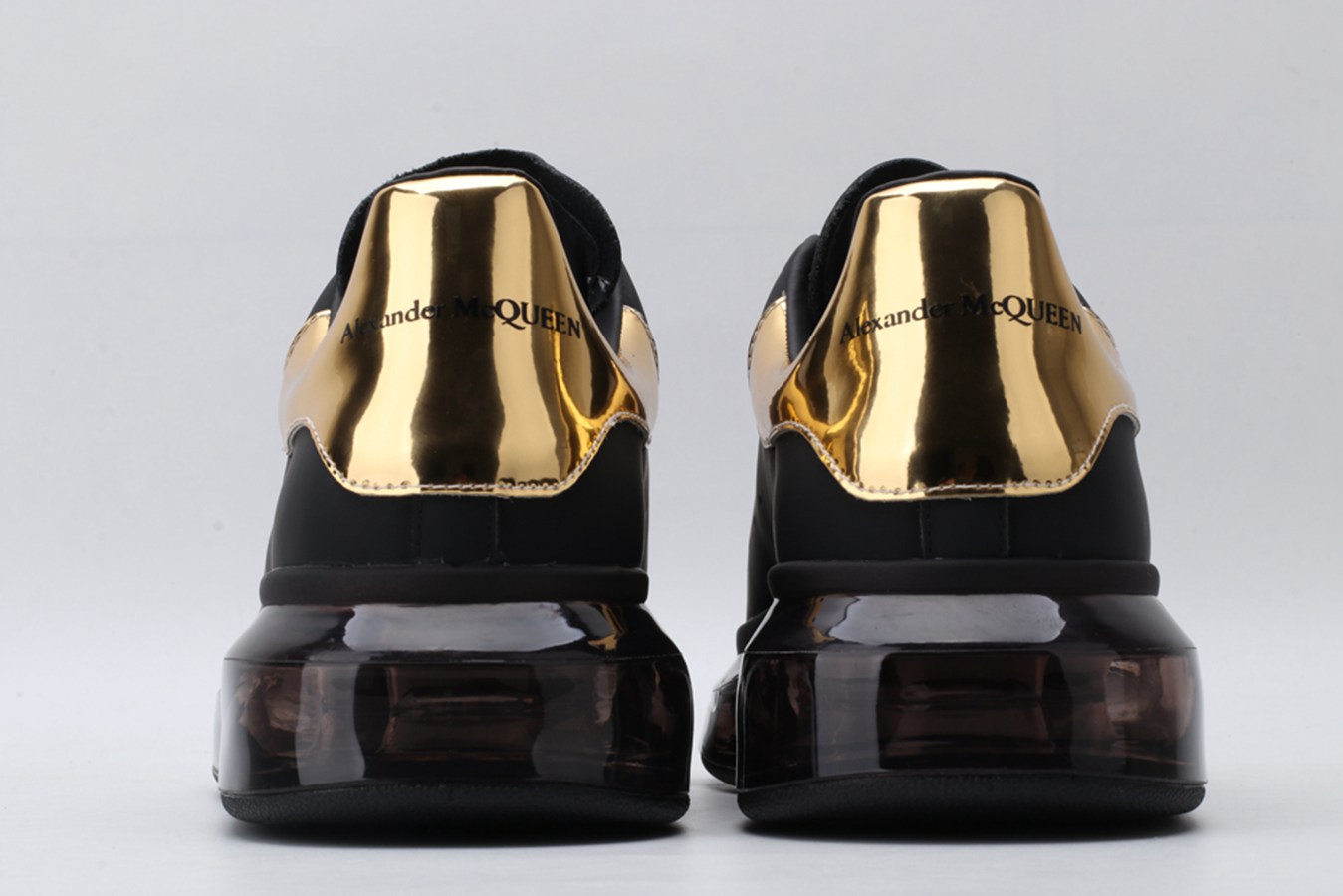 ALEXANDER MCQUEEN black oversized sneakers with gold heel