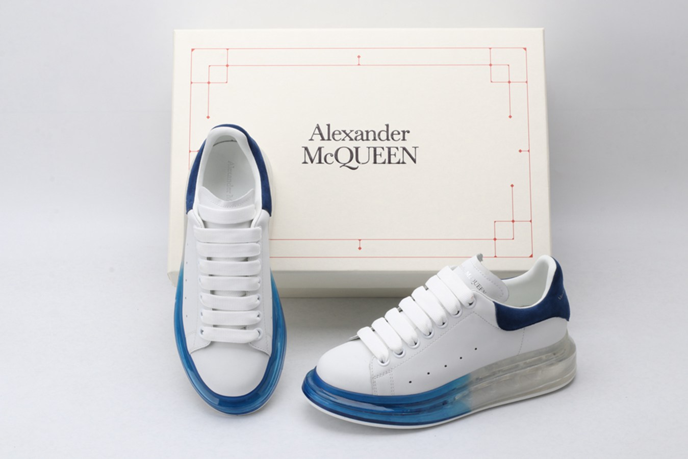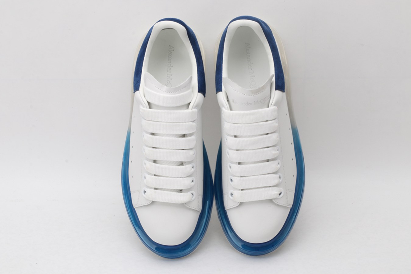 ALEXANDER MCQUEEN white oversized sneakers with blue heels