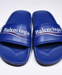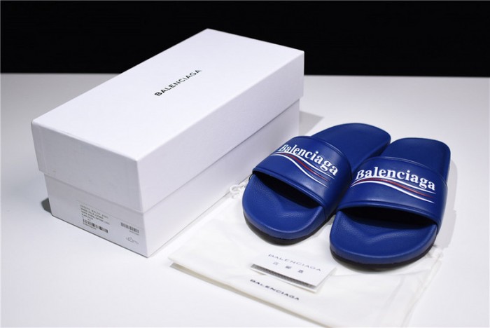 Balenciaga Logo leather slip-on sandals blue 500578 WAM00 4045