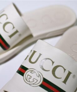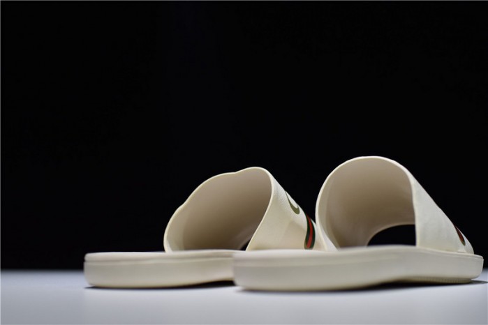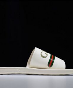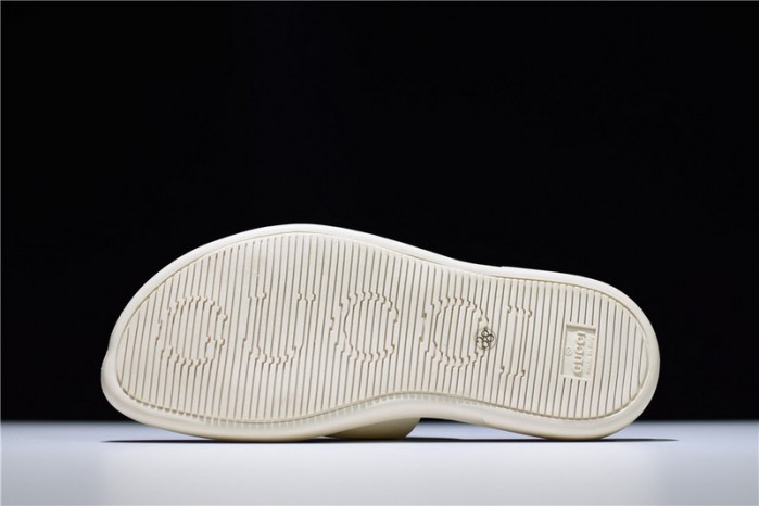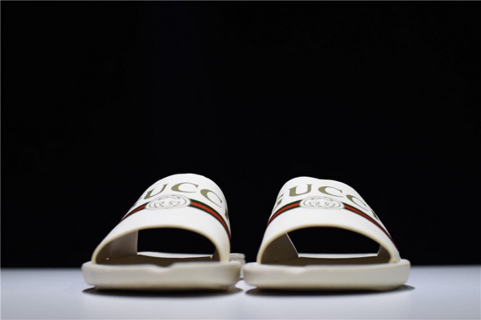 GUCCI Leather SLIDE SANDAL WHITE WITH GG LOGO WOMENS 1K969E 3F7U F0090